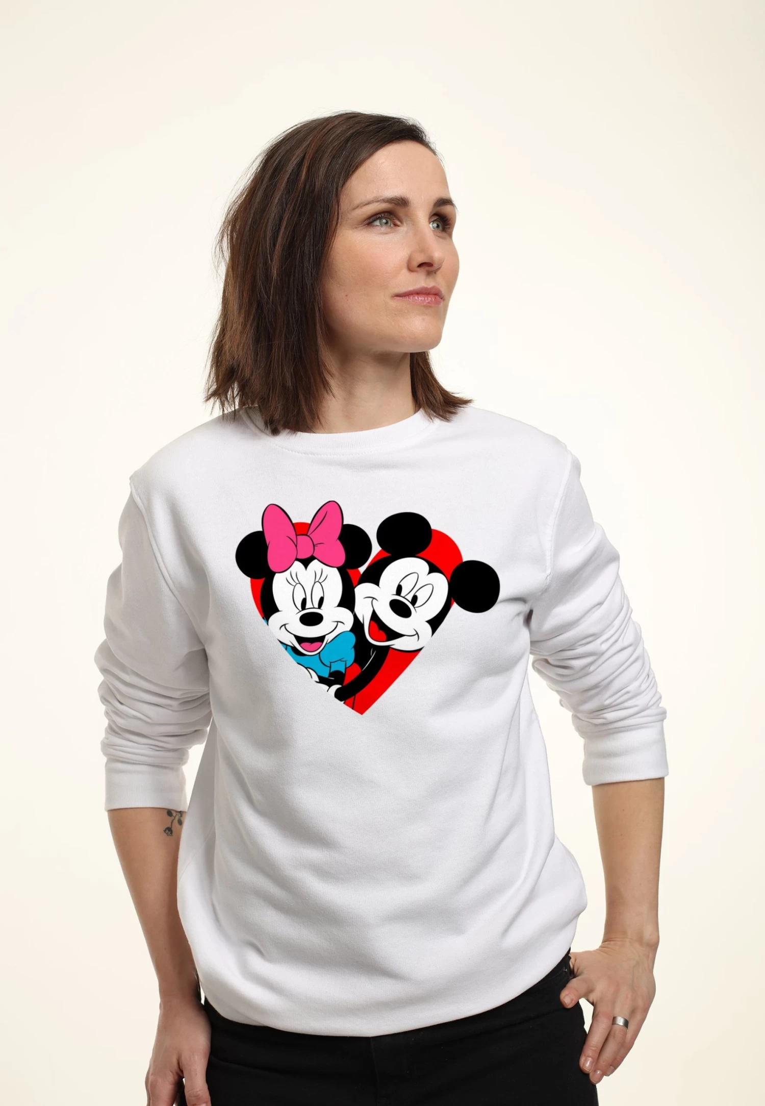 Disney Mickey Mouse Mickey Minnie Heart – Sweater – White